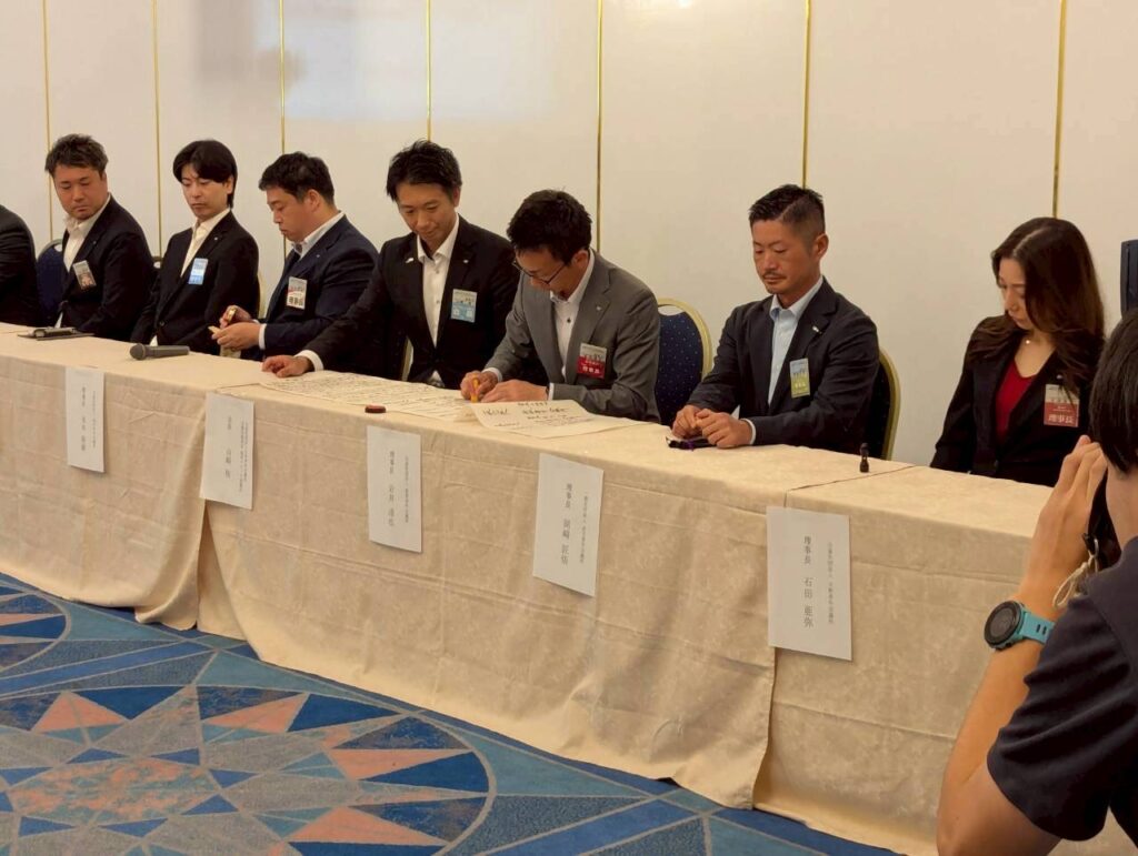 9月22日夜に、日本青年会議所北陸信越地区福井ブロック協議会と県内10の青年会議所関係者約40人が小浜市内のホテルで開催された、「北陸新幹線 小浜・京都ルート 早期全線開業に向けた決議文 調印式」に出席し、若狭青年会議所の児玉理事長も決議文にメンバー一同の総意を込めて調印しました。